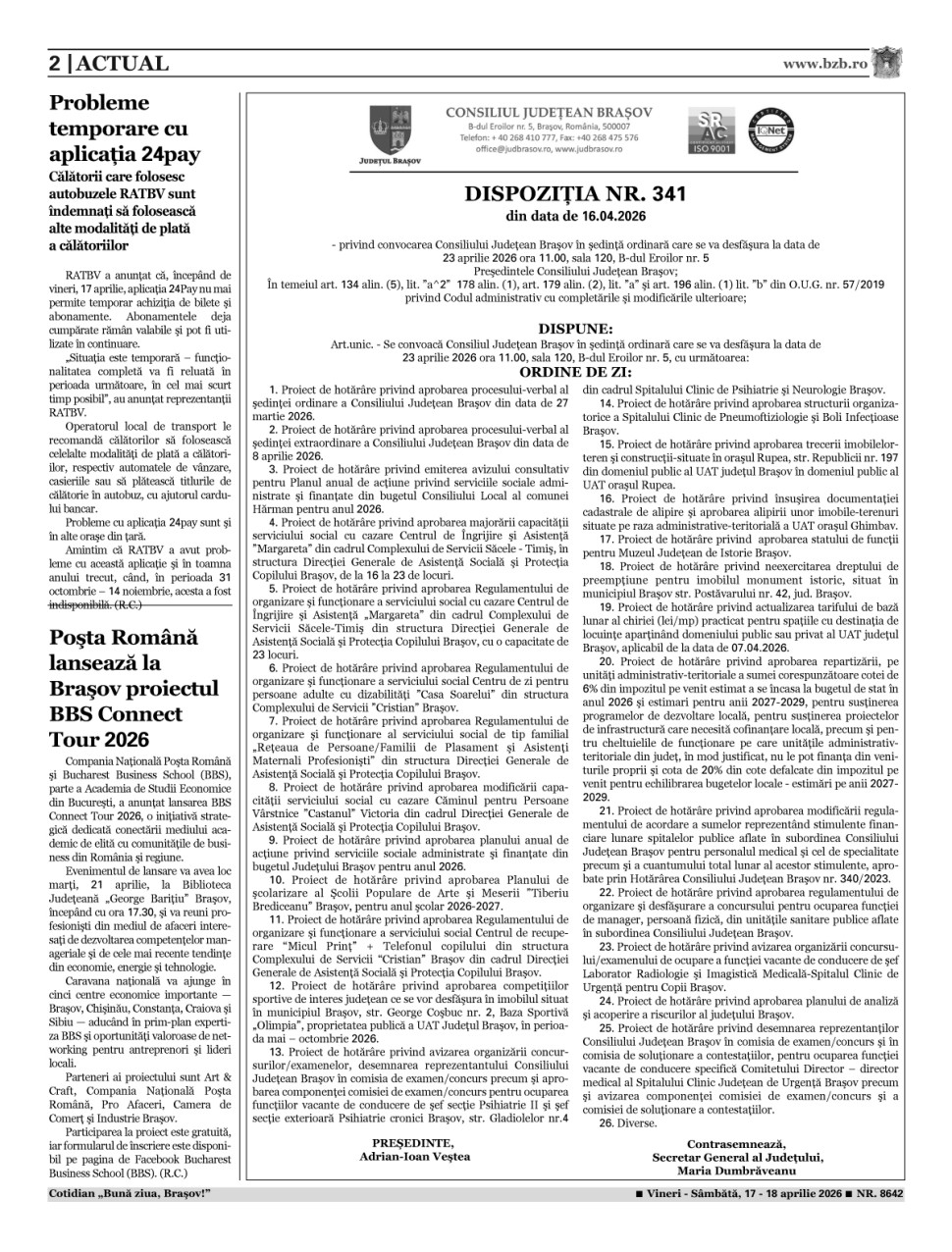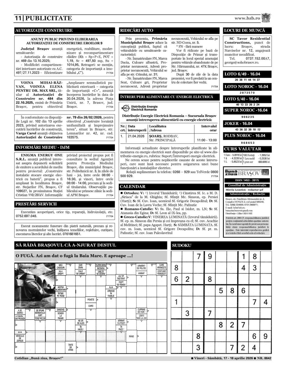 Marti, 14 aprilie 2026, ora 00:00