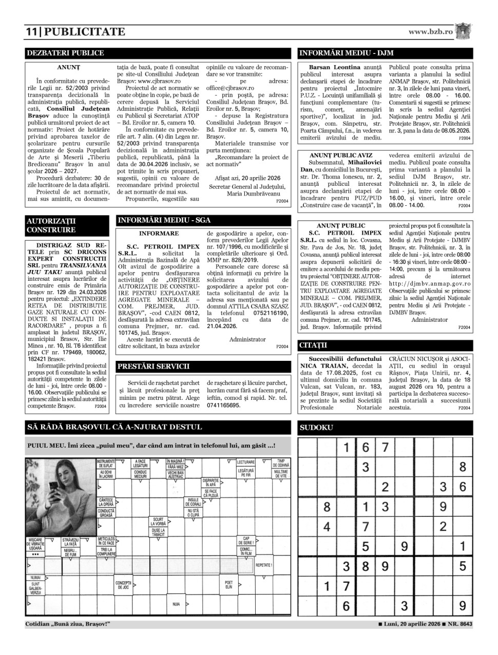 JUDEȚUL BRAȘOV: Agenda de evenimente