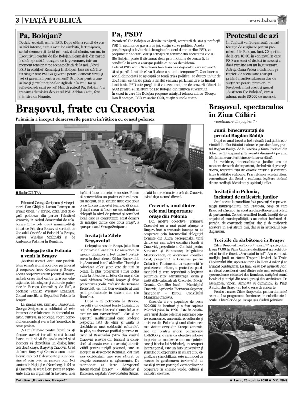 MUNICIPIUL BRAŞOV: Agenda de evenimente