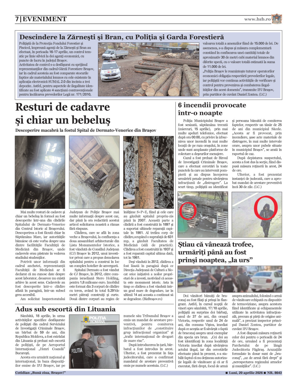 Mai multe resturi de cadavre şi chiar un bebeluş în formol au fost descoperite într-una din clădirile Spitalului de Dermato-Venerice din Centrul Istoric al Braşovului. Descoperirea a[...] » citeste mai mult