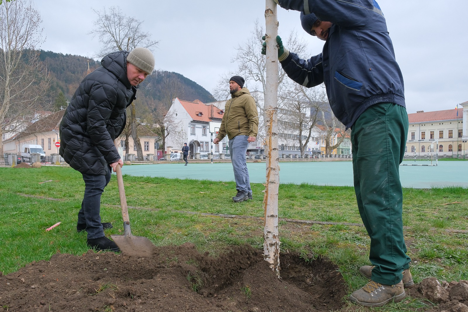 La acţiune a participat şi primarul Braşovului, George Scripcaru, care a precizat că intervenţiile în această zonă au fost gândite astfel încât să asigure un echilibru între siguranţa cetăţenilor şi protejarea mediului. „Sunt extraşi doar arborii care prezintă risc, iar în locul lor sunt plantaţi alţii noi, sănătoşi. Prin aceste acţiuni se urmăreşte nu doar regenerarea fondului vegetal, ci şi dezvoltarea armonioasă a zonei, atât din punctul de vedere al mediului, cât şi al activităţilor sportive şi de agrement. Noii arbori vor contribui la crearea unui spaţiu mai plăcut, cu mai multă umbră şi un aer mai curat, oferind condiţii mai bune pentru cei care folosesc terenul de sport sau petrec timp în aer liber. Mesteacănul plantat aici este un exemplar viguros, care, în timp, va creşte frumos şi va deveni un element important al peisajului”, a declarat Scripcaru.