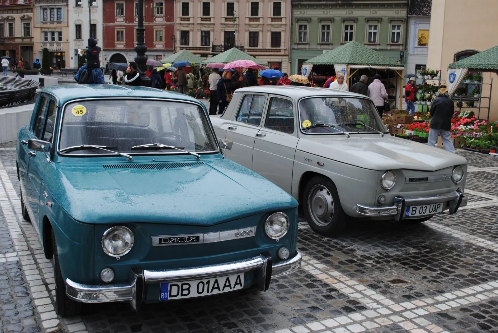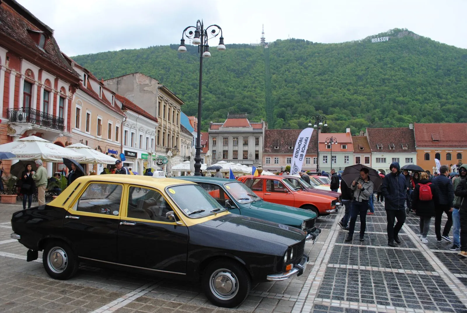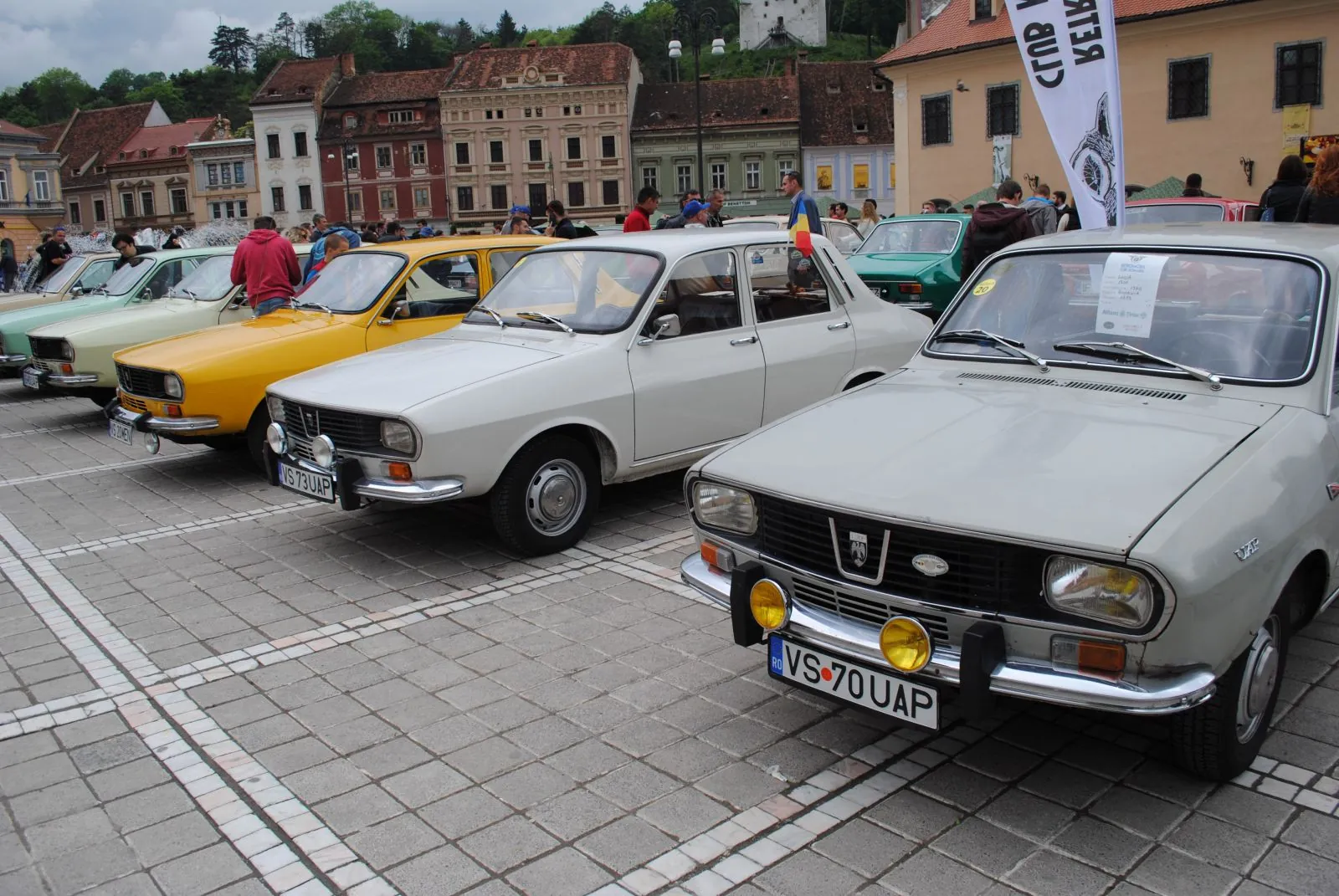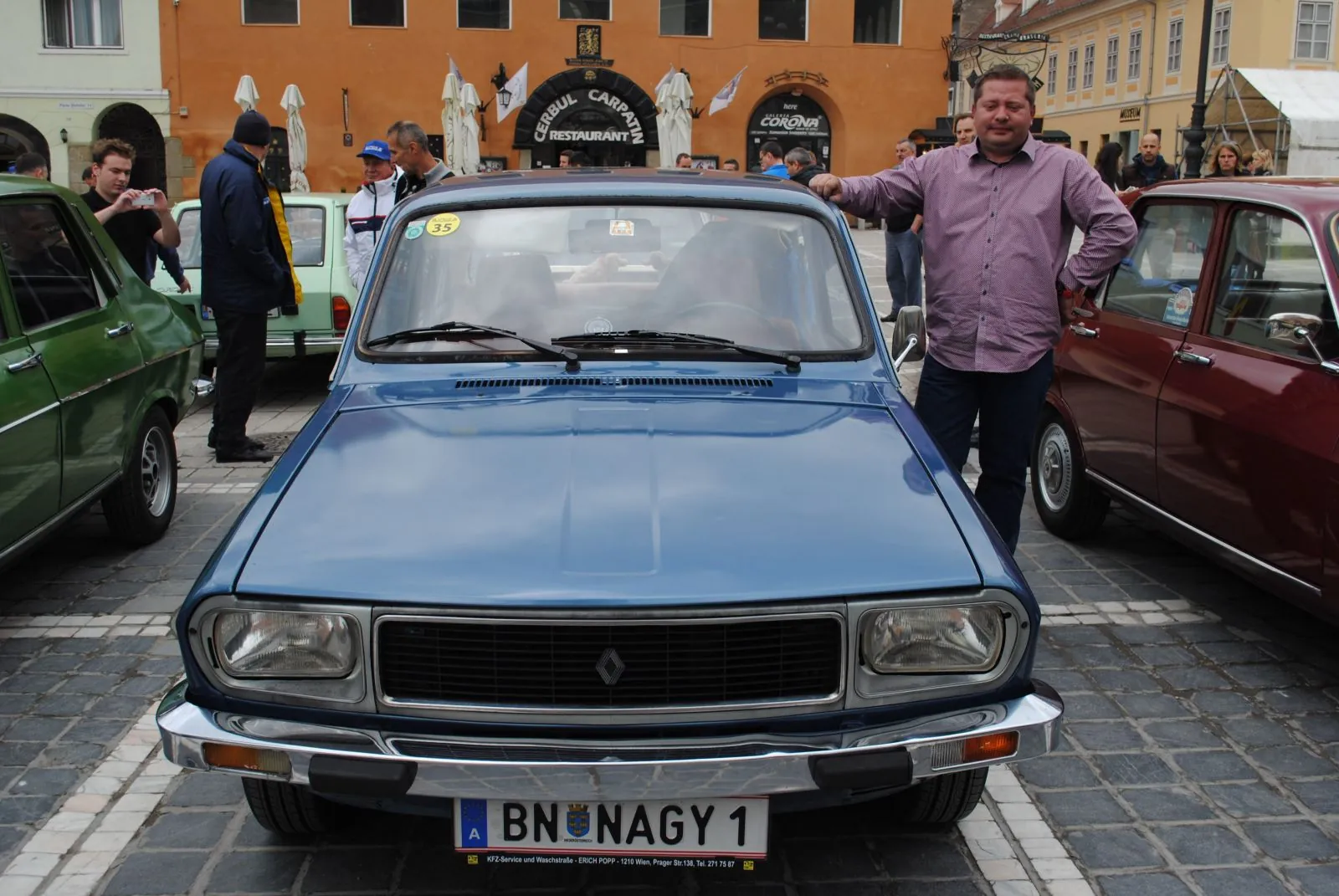 Printre stropi mărunţi de ploaie şi umbrele, pe acordurile unei fanfare ce a dat startul Zilelor Braşovului, în Piaţa Sfatului s-au întâlnit iubitorii de Dacia, bătrâna maşină care a au marcat istoria auto a ţării şi copilăria multora dintre noi. Între participanţii la întâlnirea anuală Dacia Clasic se află un român care în 1990 s-a mutat de la Petroşani în Austria, la Baden, un orăşel situat la aproximativ 30 de kilometri de Viena. Dragoş Radu Nagy s-a aflat în acest weekend la Braşov cu un Renault 12, model după care a fost creată Dacia 1300, cu număr de înmatriculare pe care stă scris numele său. „E fabricată în 1974 şi are 63.000 de kilometri. Am luat-o de la un bătrân, în Austria, pe când avea 30.000. O folosesc zilnic, iar prietenii sau oamenii care mă văd pe stradă o privesc nostalgic. Am patru astfel de exemplare, dar şi şapte Dacii. E marea mea pasiune, e un hobby costisitor mai ales din punct de vedere al întreţinerii, dar pentru mine satisfacţia merită”, a spus hunedoreanul care „plimbă” maşinile sale pe la diverse evenimente de profil, ultimul de acest gen fiind în Polonia.