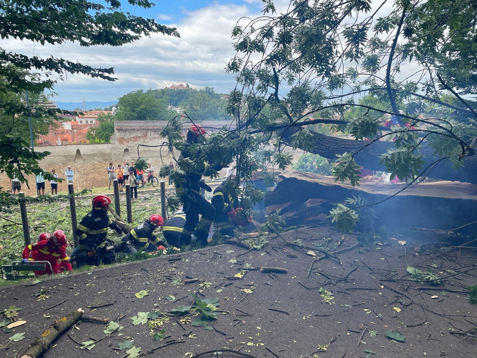 Un incident grav a avut loc duminică, 29 iunie, în jurul orei 15.00, pe Aleea Tiberiu Brediceanu din Brașov: un copac a căzut peste două persoane.