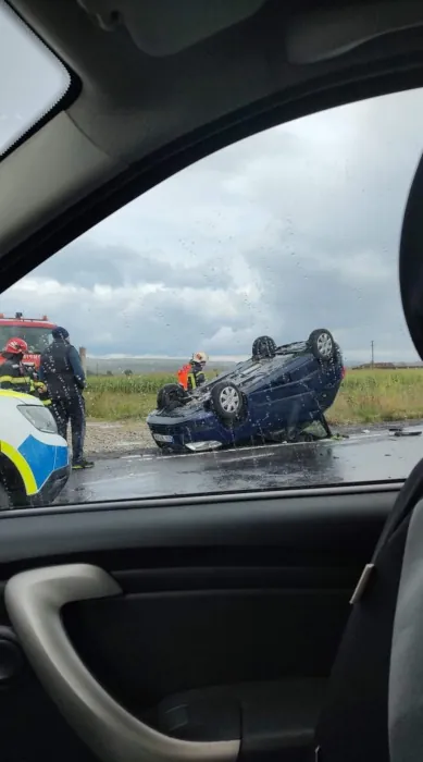 În accident au fost implicate 3 autoturisme, iar unul s-a răsturnat. La intervenţie au fost mobilizate un echipaj cu apă şi spumă, un echipaj SMURD şi două ambulanţe SAJ.