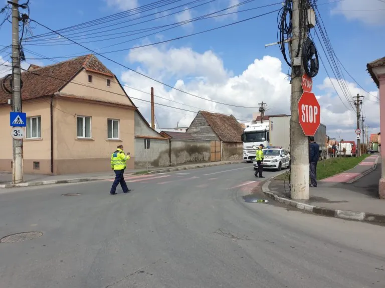Un eveniment rutier s-a produs miercuri la intersecţia străzilor Nouă şi Gării, pe raza municipiului Codlea. Şoferul unui autotren a virat dreapta, fără să observe că pe margine aştepta un biciclist, agăţându-l pe acesta din urmă cu partea din spate a vagonului şi târându-l câţiva metri pe carosabil, scrie Codlea Info.