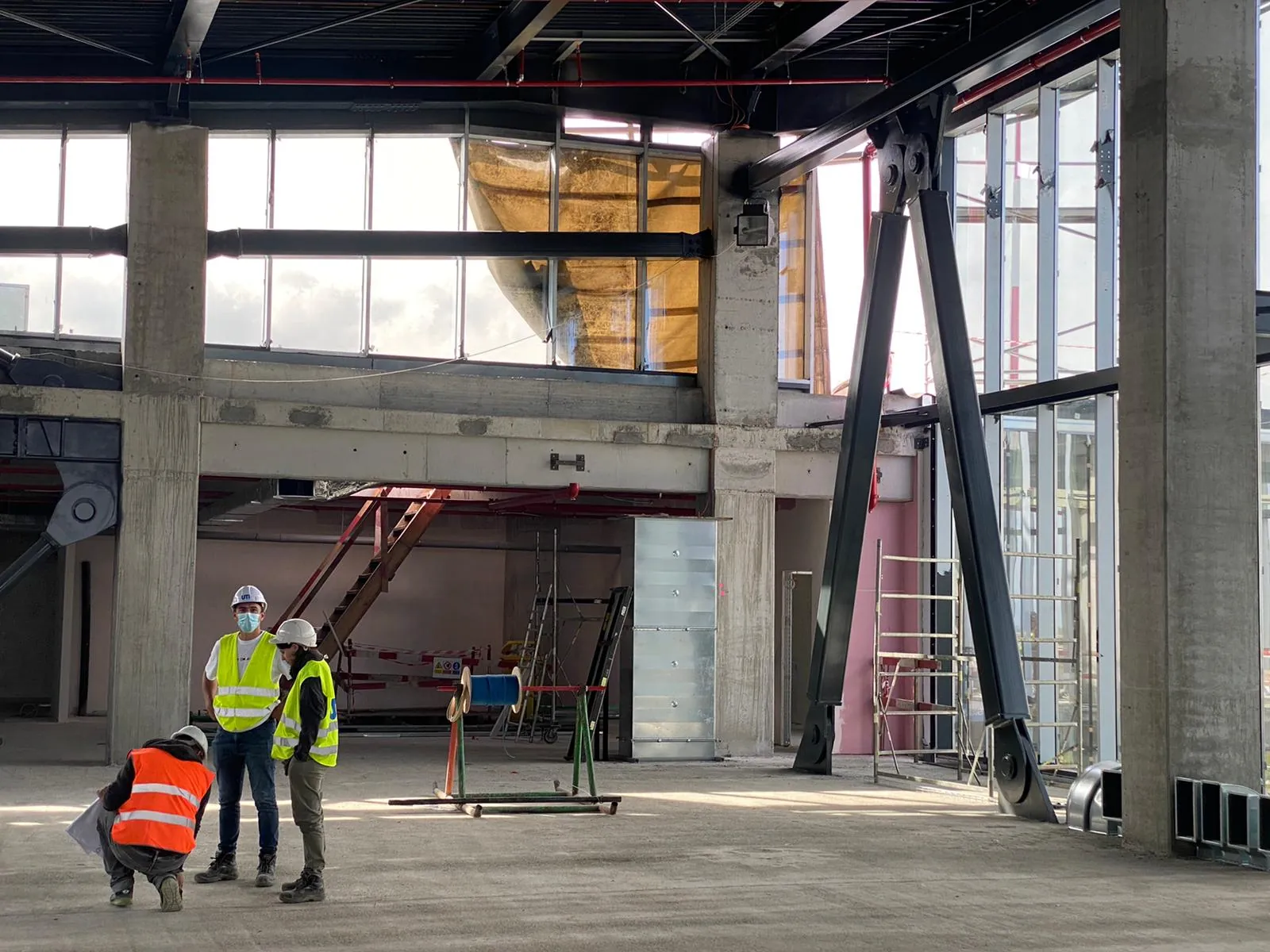 Astfel, spaţiul de la parter, în care pasagerii vor parcurge formalităţile pentru zborurile interne prin intermediul a două porţi de îmbarcare, este în mare parte gata. Scările rulante care asigură accesul spre etaj au fost deja montate. De asemenea, au fost construite scările interioare din beton şi s-a încheiat montarea pereţilor.