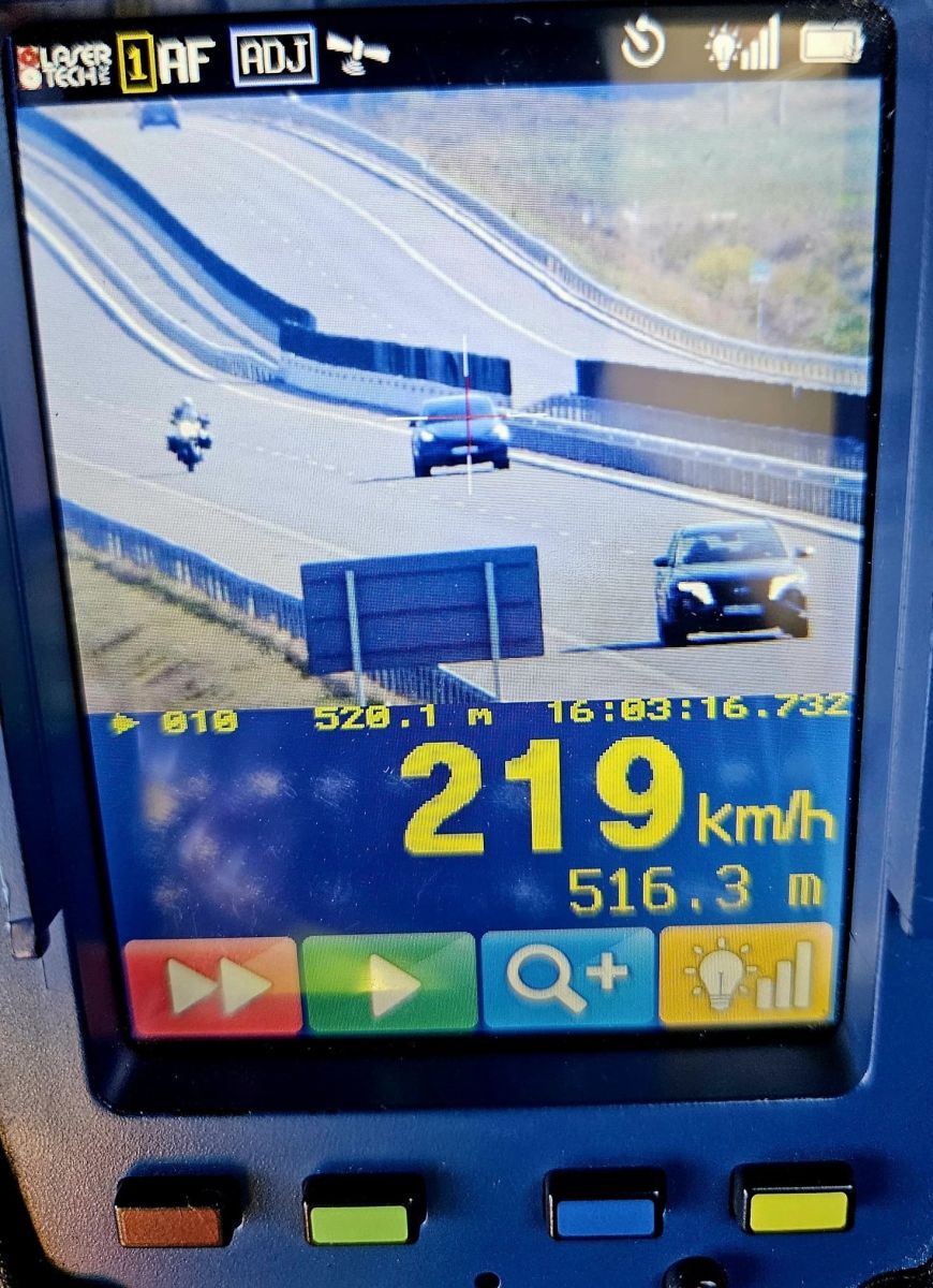 Duminică, 14 septembrie, în cursul după-amiezii, polițiștii au surprins, pe autostrada Cristian – Râșnov (6,3 km), un conducător auto grăbit… foarte grăbit. „Aparatul radar a arătat viteza de 219 km/h și, pentru cârcotași, o spunem din start că are toate verificările și omologările valabile”, a transmis IPJ Brașov.