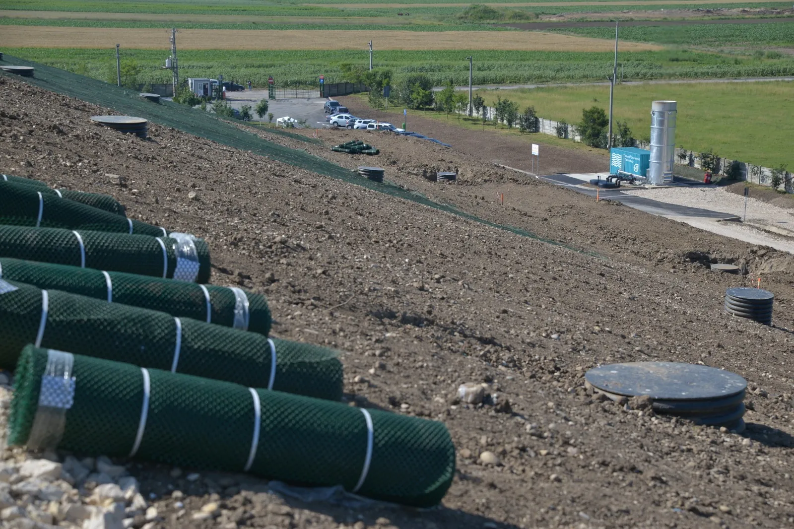 Acest proiect, finanţat integral de SC Fin-Eco SA cu suma de 14 milioane de lei, presupune închiderea Celulelor nr. 1 şi nr. 2 din depozit, care se întind pe aproximativ 6 hectare, după ce în acestea nu se mai depun gunoaie de mai mulţi ani. Lucrările au constat reconfigurarea celor două celule şi în impermeabilizarea lor, cu ajutorul mai multor folii speciale (geocompozit pentru drenajul biogazului, geocompozit bentonitic, geocompozit de drenaj al apelor meteorice, saltea antieroziune), peste care s-au aşternut de sol, ultimul dintre ele fiind pământ vegetal, care săptămâna trecută a fost înierbat şi pe care se vor planta ulterior şi puieţi de mici dimensiuni. Astfel, cele două celule se vor transforma, în scurt timp, într-un deal verde.