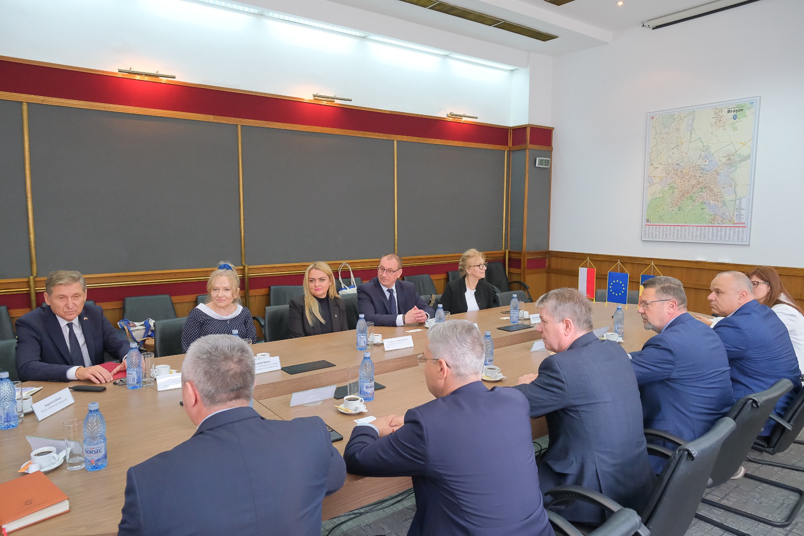 Primarul George Scripcaru şi viceprimarii Dan Ghiţă şi Lucian Patraşcu au primit vineri, 17 aprilie, vizita unei delegaţii poloneze din partea Primăriei Cracovia, în cadrul demersului de colaborare între cele două municipalităţi iniţiat de Primăria Braşov şi sprijinit de Consulul Onorific al Poloniei la Braşov, Janusz Wieslaw Szalinski şi de Ambasada Poloniei În România.