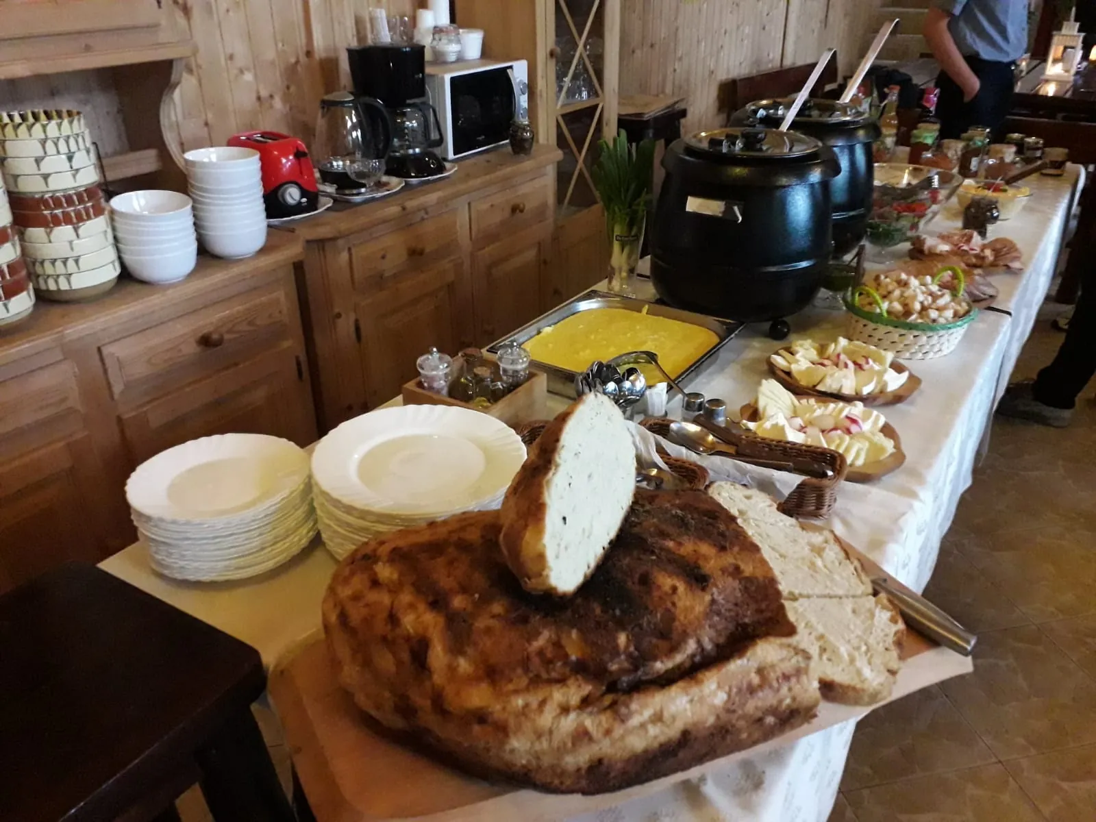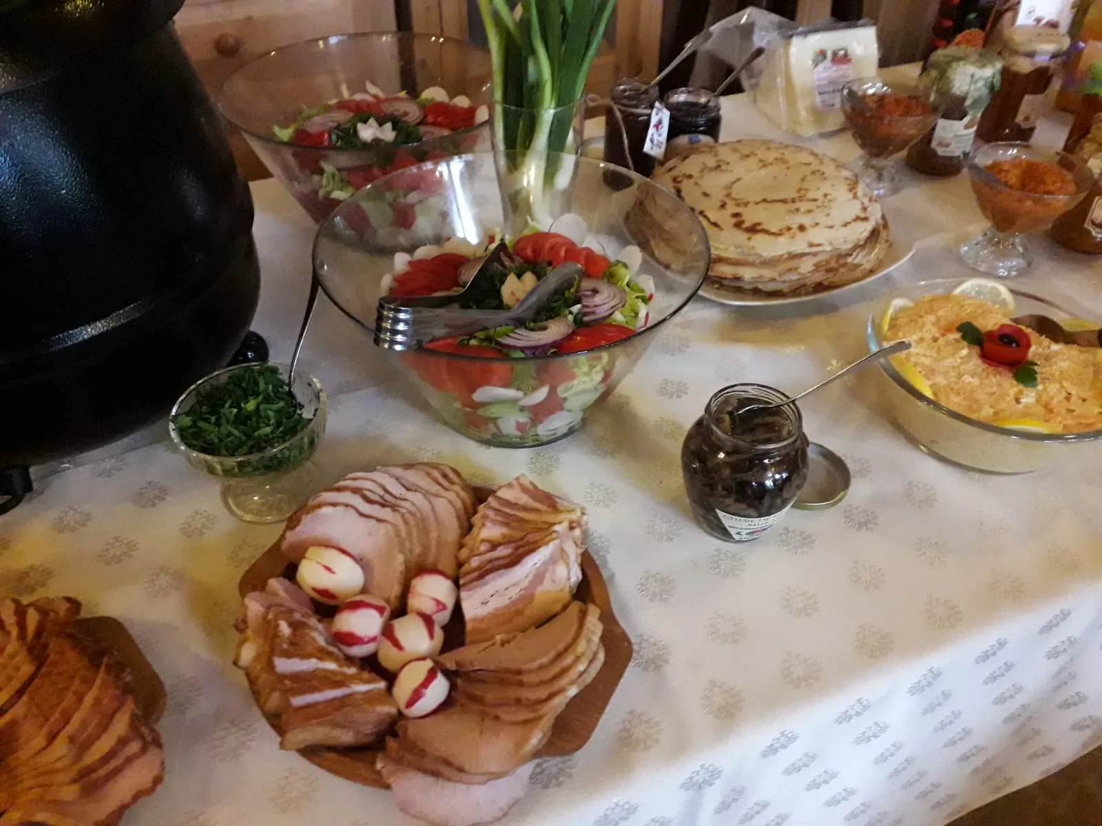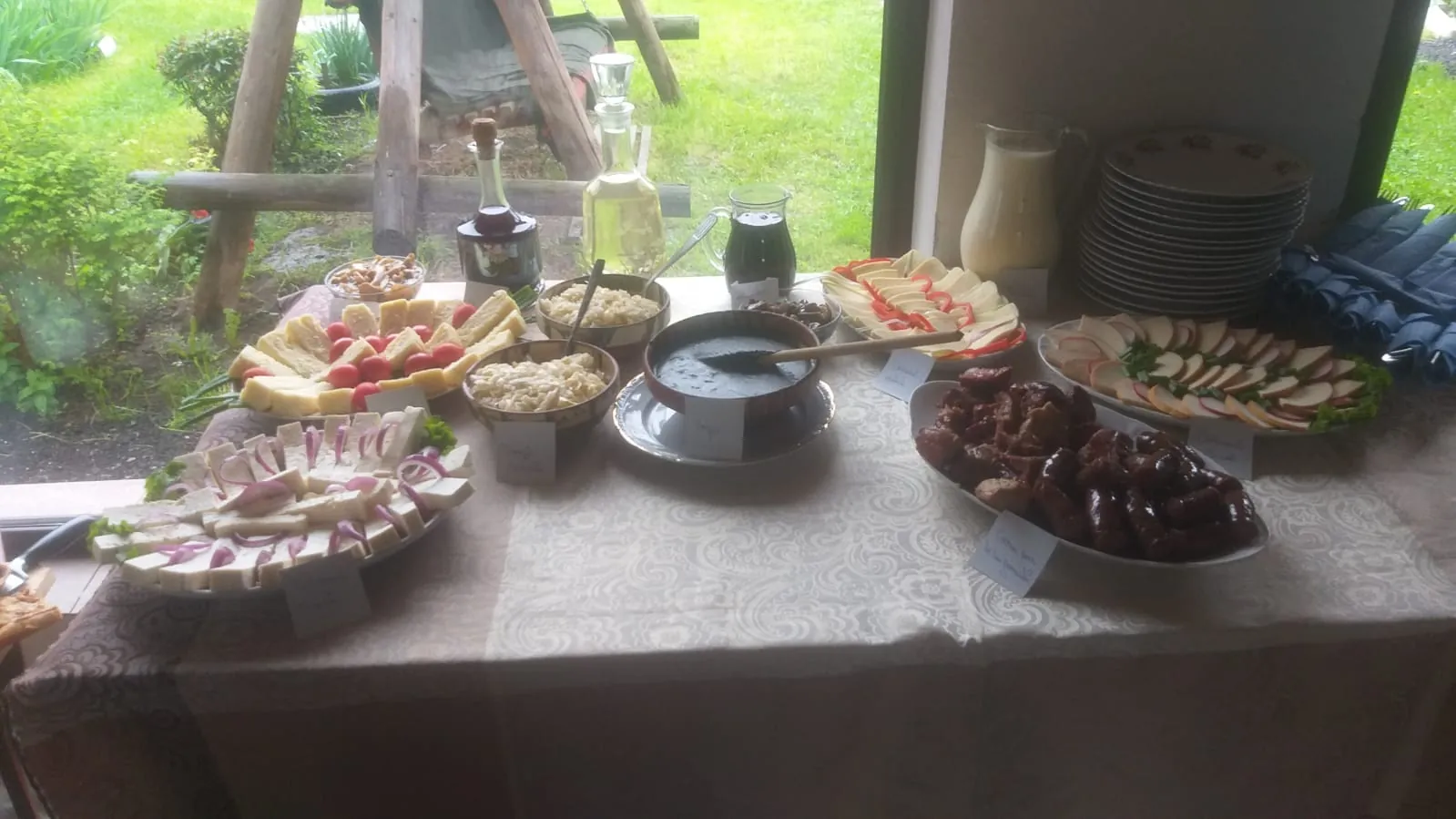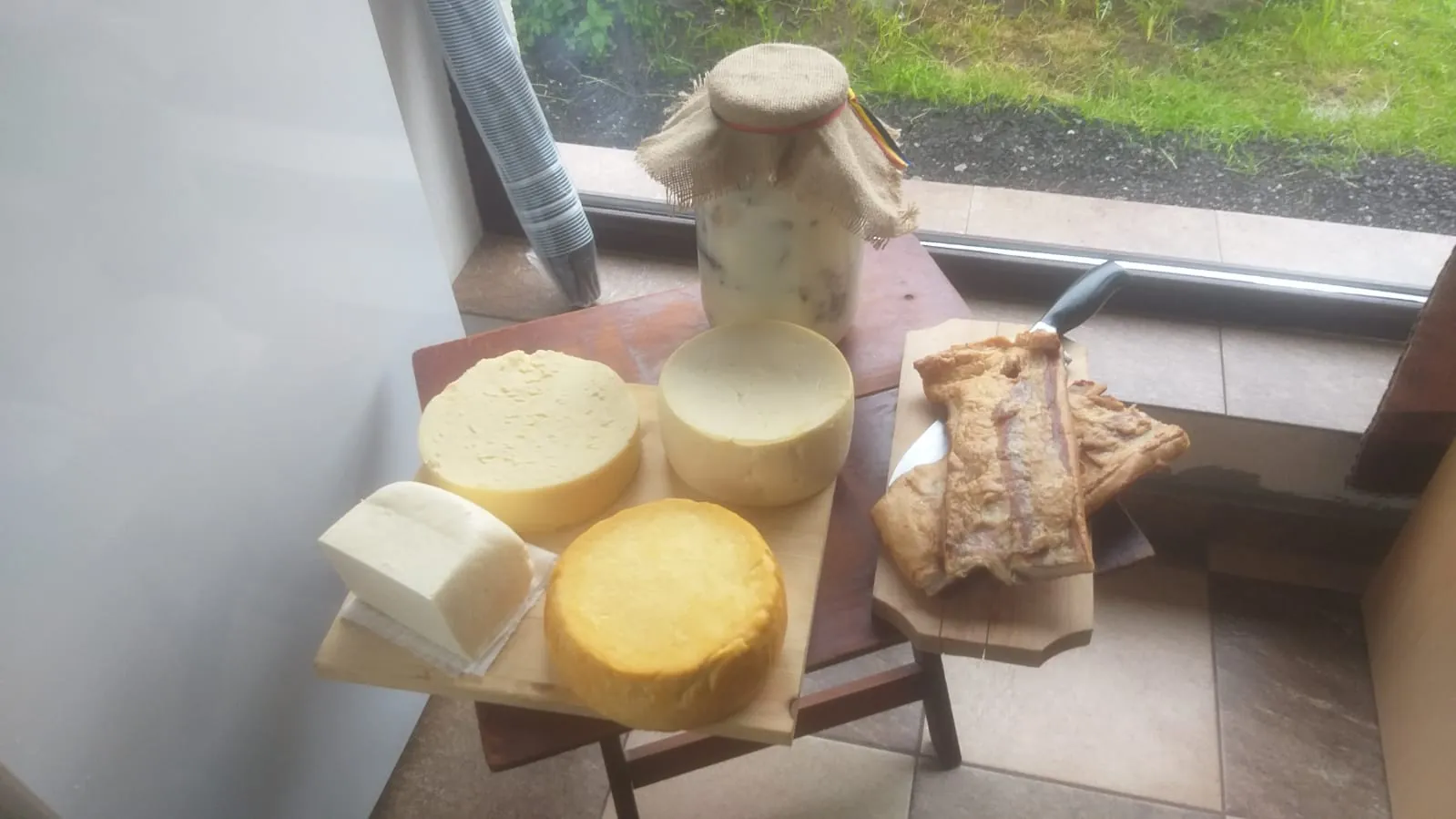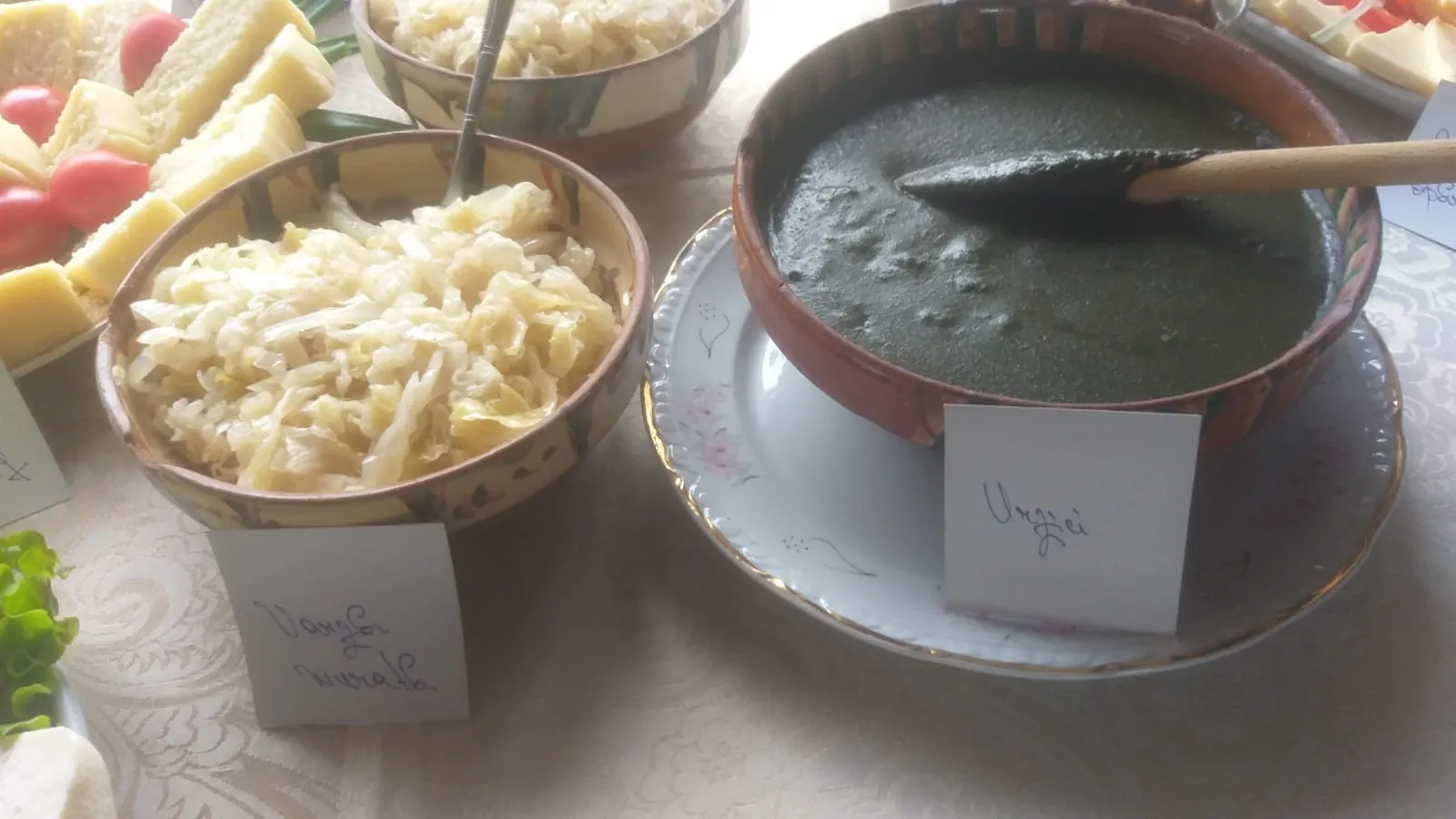 Tot aici găsim urzici, tot felul de brânzeturi specifice zonei, carne de porc la garniţă, dar şi jintiţă, un preparat lichid din zerul rămas în urma preparării brânzeturilor.