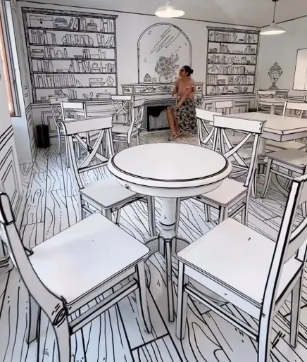 „Acesta nu este un muzeu al iluziilor, ci o cafenea inedită! (…) Recunosc că mi-a luat câteva minute să imi dau seama ce se întamplă în jurul meu, mă simţeam ca într-un desen animat! Tot mobilierul este real, iar desenele au fost pictate manual”, a scris „aura.calatoreşte” în jurnalul ei de călătorii, de pe TikTok.
