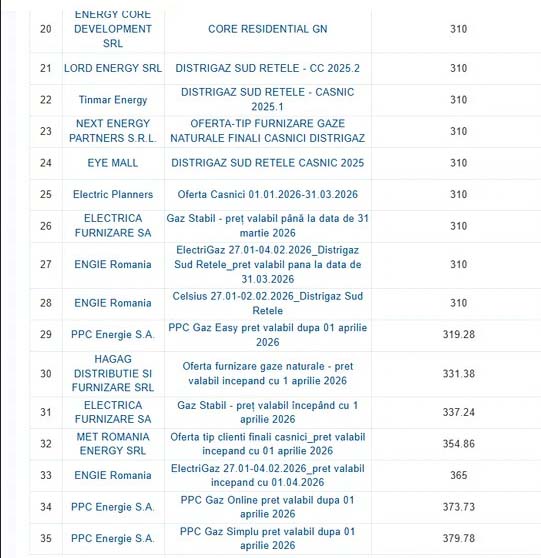 Redăm mai jos principalele oferte de preţ ale furnizorilor de gaze naturale începând cu data de 1 aprilie 2026.