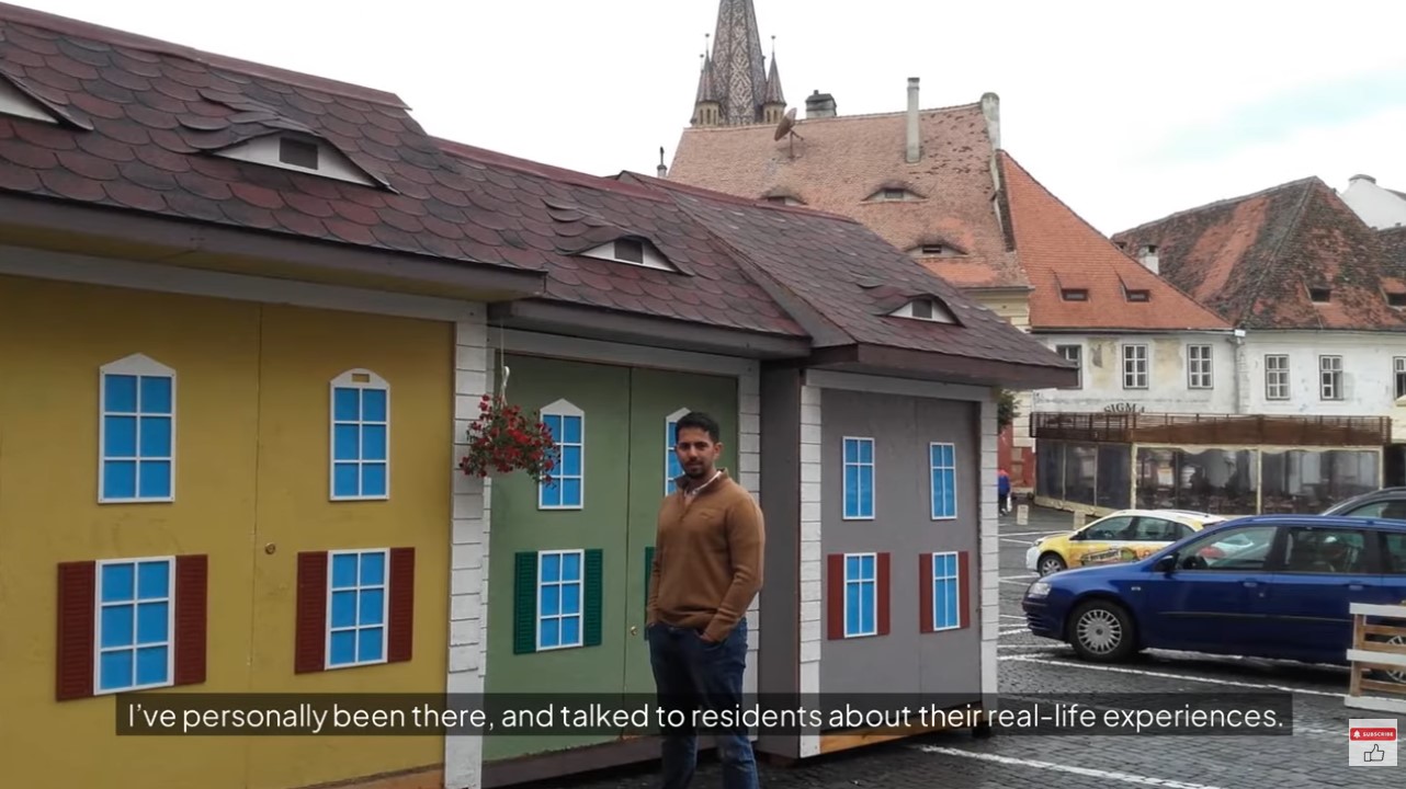 În introducere, el spune că România este cea mai ieftină țară din Uniunea Europeană în care poate trăi un pensionar străin. „Este, de asemenea, una dintre cele mai sigure țări din lume și, recent, a fost clasată pe locul 15 la nivel mondial pentru profesioniștii care lucrează remote”, spune vloggerul.