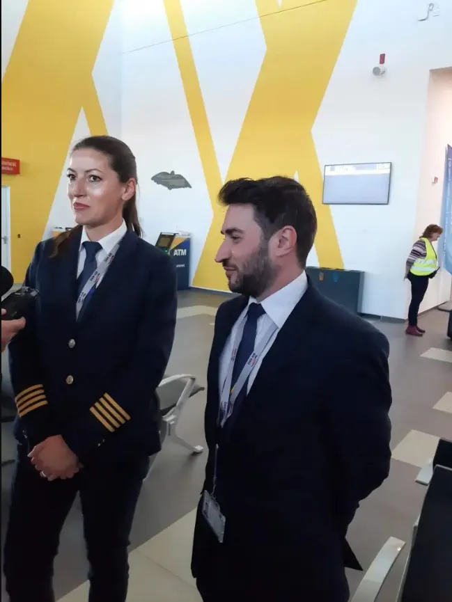 Foto: Directorul Dan Air, alături de pilotul ultimei curse operate de la Braşov.