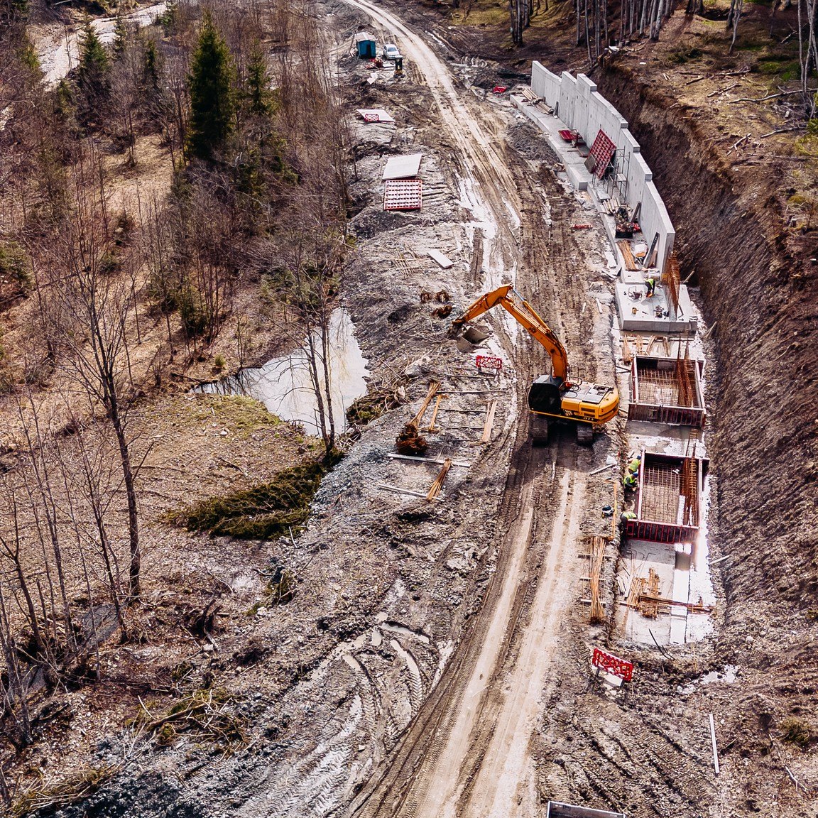 Până în prezent, au fost realizate 885 metri liniari de structuri de sprijin din beton armat, 1.120 de piloţi foraţi pentru fundarea zidurilor de sprijin, 25 de podeţe, precum şi 220 de metri liniari de structuri de sprijin din gabioane.