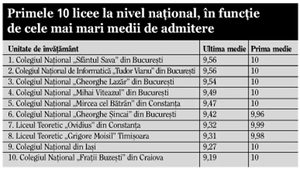În acest an, după admiterea la liceu, prima etapă, judeţul Braşov nu are nici măcar un colegiu în topul celor mai bune licee din ţară. Nici măcar Colegiul Naţional „Andrei Şaguna” n-a intrat în acest top. N-a ajuns nici în top 20, publicat de Ministerul Educaţiei, ultima medie din top 20 fiind de 9,02 a Liceului Teoretic de Informatică „Grigore Moisil” Iaşi. La „Şaguna”, ultima medie de admitere a fost, anul acesta, 8,95, la Ştiinţe sociale. Asta cu toate că, de regulă, după rezultatele de la Bacalaureat, „Şaguna” are un loc asigurat în top 10.