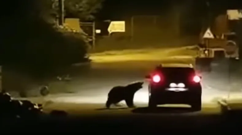 O ursoaică a fost filmată în timp ce ataca o maşină care circula cu viteză redusă pe o stradă din staţiunea prahoveană Buşteni. Când a văzut maşina apropiindu-se de locul în care se aflau puii, ursoaica a sărit pe maşină şi a lovit portiera din dreptul şoferului. Speriat, şoferul a apăsat pedala de acceleraţie, evitând în ultima clipă puii care alergau în faţa maşinii. „Mamă, daună i-a dat la portieră”, se aude pe fundalul înregistrării care ar fi fot făcute în noaptea de duminică spre luni, 22/23 august.