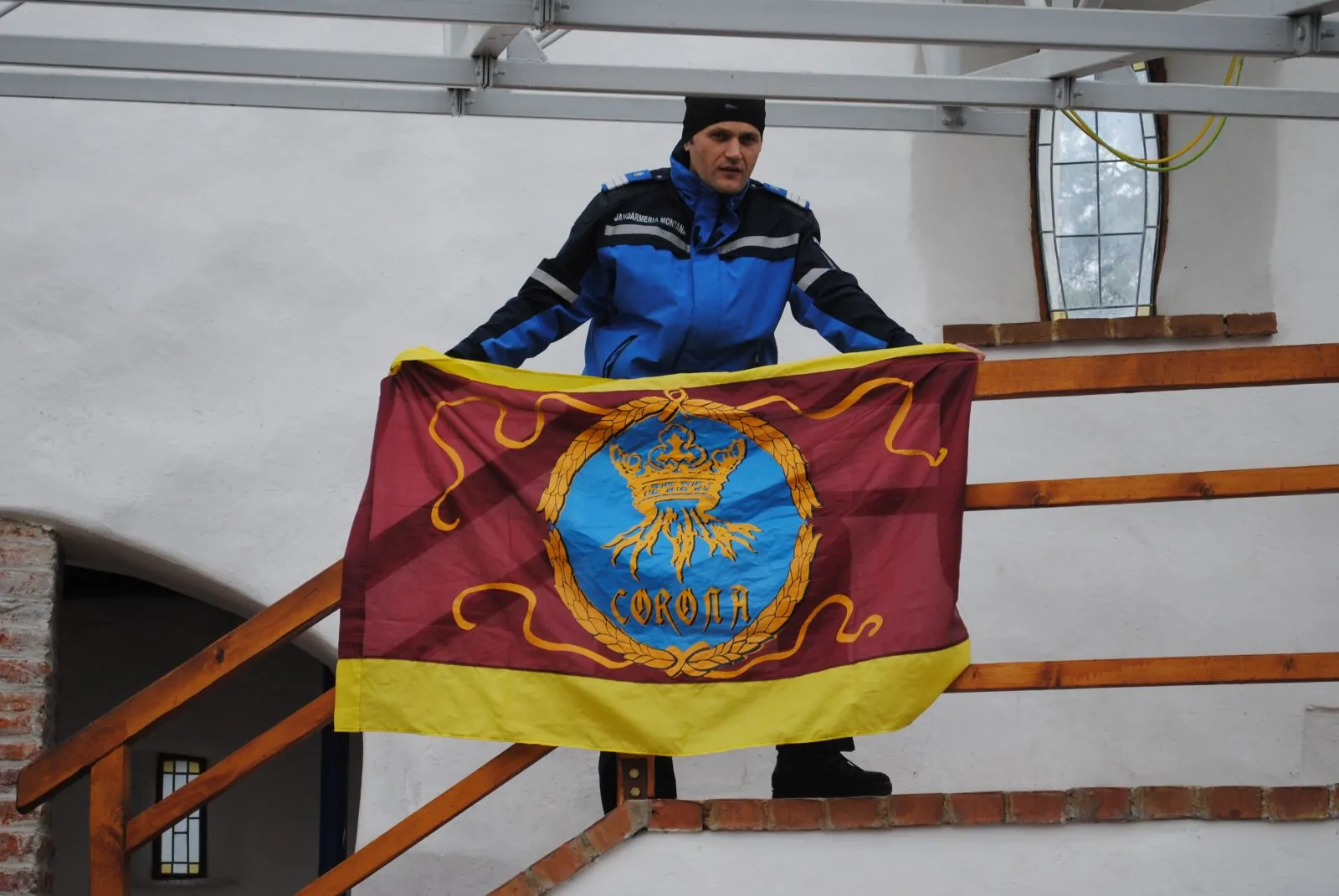 După ce, la începutul acestei luni, jandarmii montani din Braşov au înlocuit tricolorul arborat pe muntele Tâmpa, ieri a avut loc o acţiune similară la Turnul Alb. Aici a fost vorba de schimbarea drapelului istoric al judeţului Braşov, cel vechi, deteriorat din cauza vântului, a ploilor sau a temperaturilor mari de pe timpul verii, fiind înlocuit cu unul identic, cu dimensiunile de 1,5 metri pe un 1 metru. „Este vorba despre o acţiune a Consiliului Judeţean Braşov, care ne-a cerut ajutorul, fiind vorba de un oarecare grad de periculozitate. Drapelul vechi era deteriorat şi se cam făcuse timpul pentru o schimbare. Nu a fost extraordinar de dificil, dar este nevoie de multă atenţie şi concentrare într-o astfel de intervenţie. Vom răspunde prezent şi cu alte ocazii, atunci când autorităţile locale ne vor solicita ajutorul pentru acţiuni de acest gen”, ne-a spus plt. maj. Ovidiu Nedelcu (foto) de la postul de Jandarmerie Montană din Poiana Braşov, cel care a arborat noul drapel pe Turnul Alb.