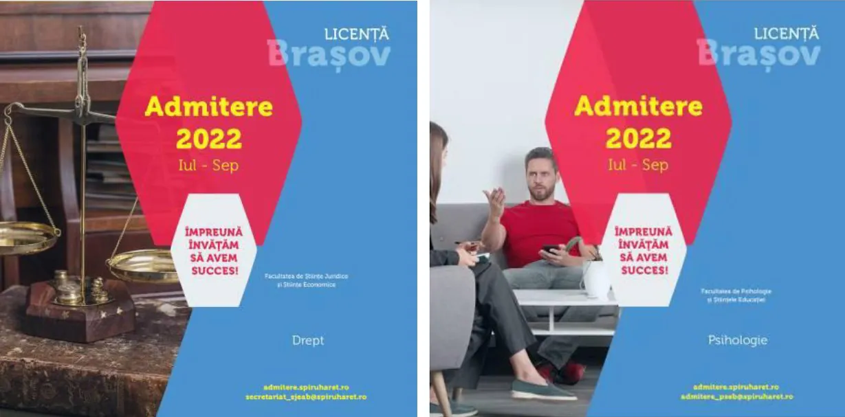 Universitatea Spiru Haret, cea mai mare instituţie de învăţământ superior privată din România, organizează ADMITERE pentru Facultatea de Psihologie şi Ştiinţele Educaţiei şi Facultatea de Ştiinţe Juridice şi Ştiinţe Economice din Braşov