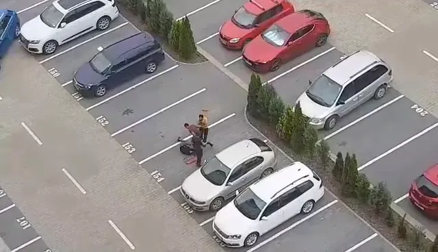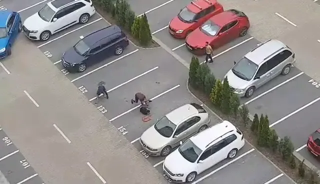 Un bărbat a fost bătut cu bestialitate de alţi trei, miercuri, 23 iunie, în jurul orelor 19.30, într-o parcare situată într-unul dintre cartierele noi ale Braşovului. Un amator a filmat de la balcon finalul conflictului, iar pe imagini se poate vedea cum victima, căzută la pământ, este lovită cu picioarele în faţă de doi dintre agresori. Imediat, aceştia o iau la fugă, împreună cu al treilea agresor, pe trotuarul de la marginea şoselei, iar maşina Jandarmeriei ajunge în dreptul lor. Reprezentanţii forţelor de ordine au coborât în mare viteză şi i-au imobilizat în doar câteva secunde pe cei trei bărbaţi. Între timp, victima şi mai mulţi martori au sosit lângă jandarmi, moment în care filmarea s-a încheiat.