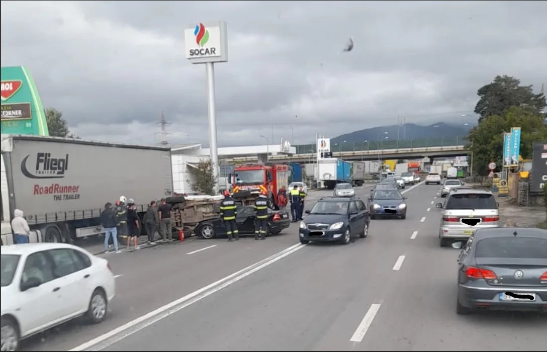 Au fost alertate Poliția și ISU, traficul în zonă fiind îngreunat. Deocamdată, cazul nu apare în raportările IPJ.
