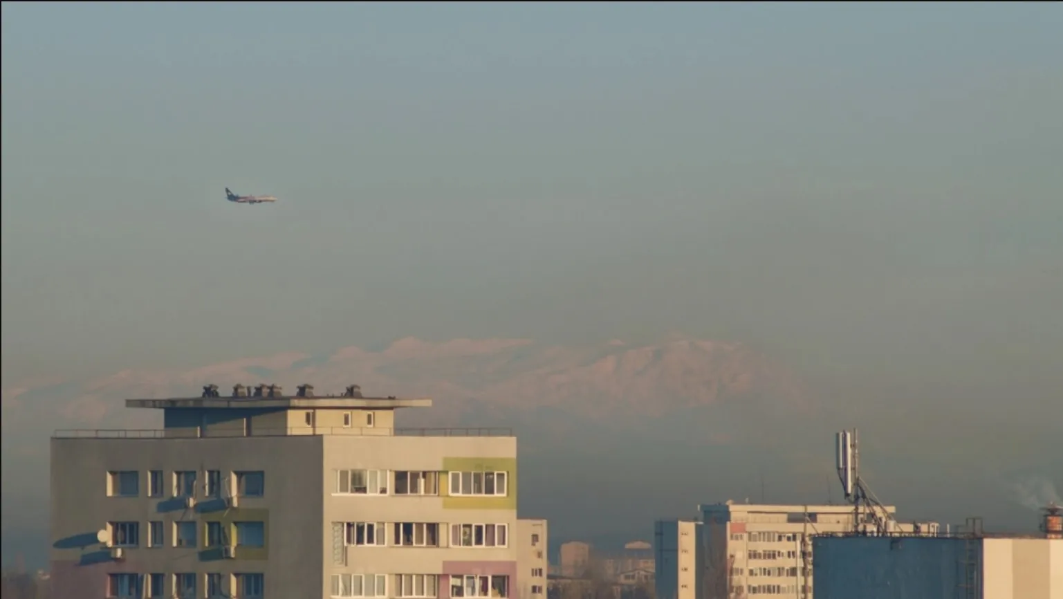 În imagine se pot vedea clar crestele înzăpezite ale munţilor. Foarte rar, munţii se pot vedea din Capitală, iar explicaţia ar fi legată de condiţiile meteo din ultimele zile, cerul fiind mai mult senin, iar temperaturile neobişnuit de ridicate.