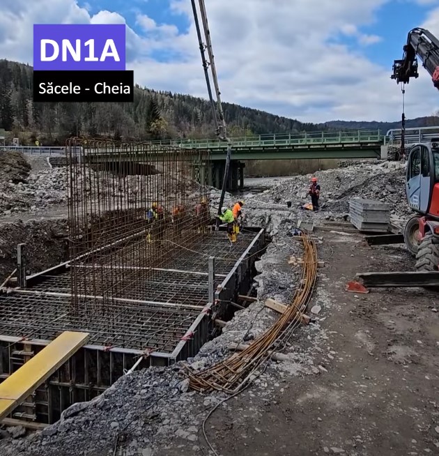 Drumarii braşoveni anunţă un progres foarte bun pe şantierul pentru reconstrucţia podului de pe DN1A, între Săcele şi Cheia, în zona Brădet.