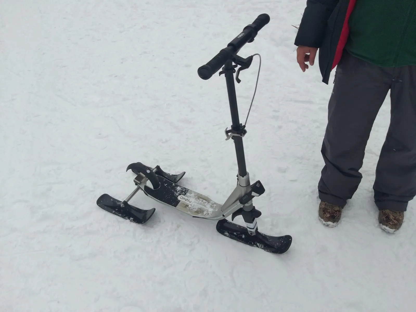 Şeful Agenţiei Metropolitane a făcut proiectul şi câţiva prieteni au pus în practică o modificare, astfel încât, în partea din spate a trotinetei să existe două tălpi. Astfel, stabilitatea este mai bună şi poate fi folosită şi de adulţi, chiar dacă masa lor este mai mare, fără pericolul de a intra în zăpadă în timpul mersului. „Ideea mi-a venit de la faptul că trotineta este un mijloc de transport ecologic pe care, de patru ani , îl folosesc intensiv. În plus, mi-aduce aminte de copilărie, când unii aveam o trotinetă, albastră, de obicei, cu roţi mai mari, aşa că, de patru ani, am revenit la aceasta pasiune şi am zis să nu o ţin peste iarnă în cămară, am găsit pe Internet aceste tălpi speciale pentru trotinete. Modificarea constă în dispozitivul din spate, pentru o portanţă mai bună şi pentru greutatea pe care o suportă mult mai bine decât o singură talpă”, a explicat Dragoş David.