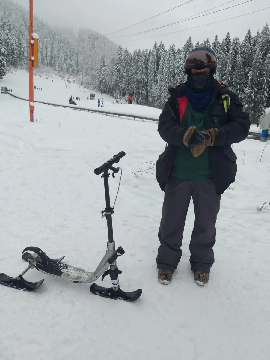 Noul vehicul pentru distracţia pe pârtii este foarte comod şi uşor de utilizat. „Este o trotinetă reglabilă, ea se pliază şi o car mai uşor în mână. Am şi un suport de umăr, o bandă de umăr cu care o prind şi o transport, iar la coborâre te sui pe ea şi îi dai drumul la vale. Oprirea este relativ simplă, nu prinde viteză mare şi atunci se opreşte exact ca atunci când mergi pe asfalt cu trotineta, adică pui piciorul jos şi faci un mic bracaj din ghidon”, a mai dezvăluit Dragoş David. Inginerul braşovean se bucură deja de câteva zile de trotinetă pe pârtiile din Poiana Braşov, iar curioşii fac coadă la invenţie de câte ori ajunge la baza pârtiei.