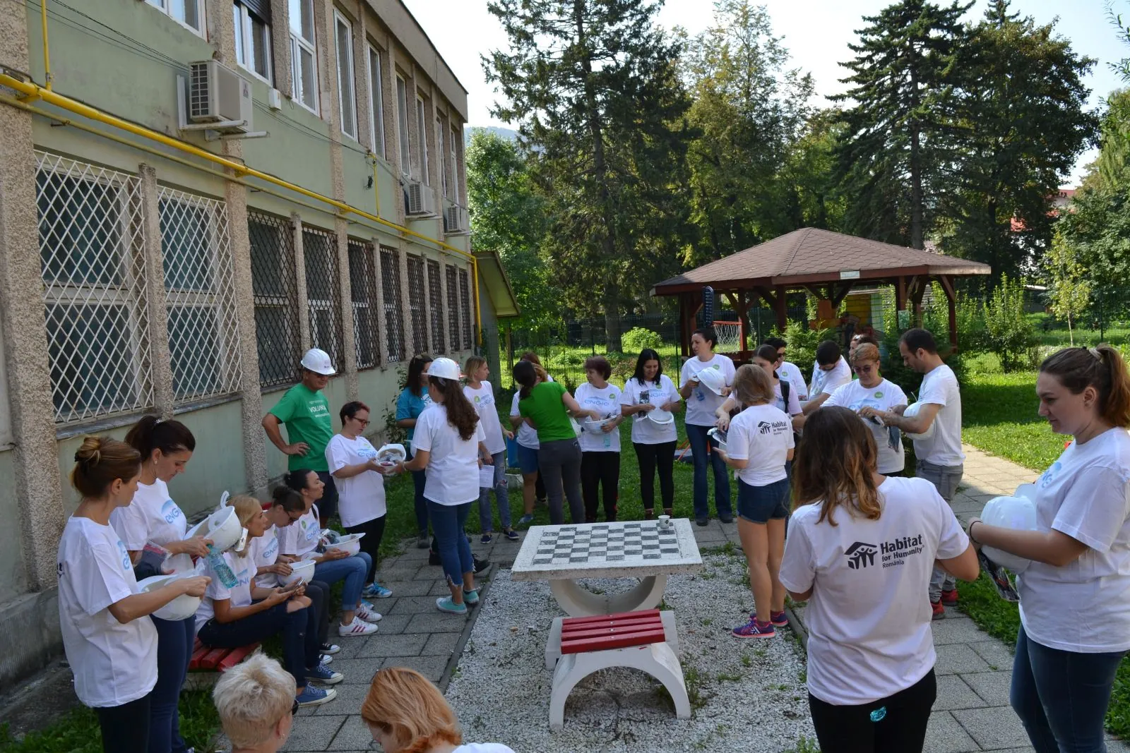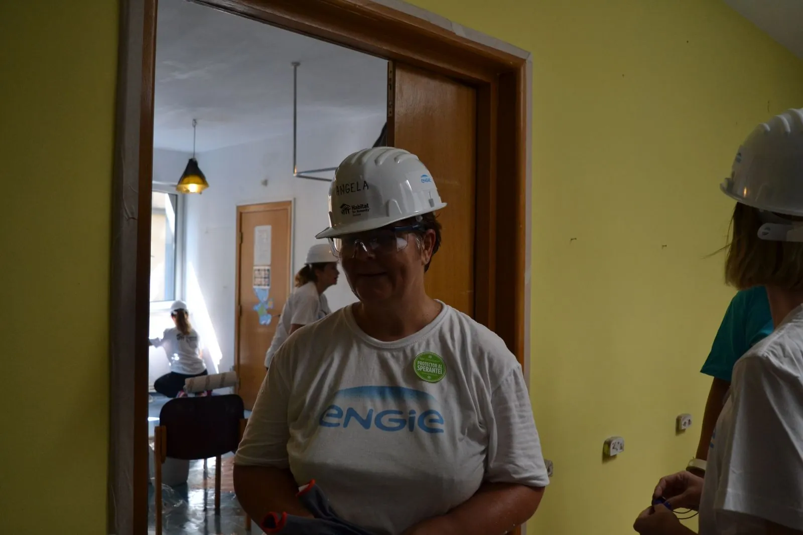 Pe lângă munca specialiştilor, o mână de ajutor au dat şi angajaţi ai ENGIE Romania. Voluntarii, angajaţi ai companiei, din Bucureşti şi Braşov, au lucrat timp de o zi la realizarea hidroizolaţiei şi zugrăvirea camerelor interioare, sub îndrumarea specialiştilor de la asociaţia Habitat for Humanity, coordonatoarea lucrărilor. Împărţiţi în două echipe, una a lucrat la interior, unde a zugrăvit centrul de zi pentru copii, iar cealaltă echipă a lucrat la exterior.