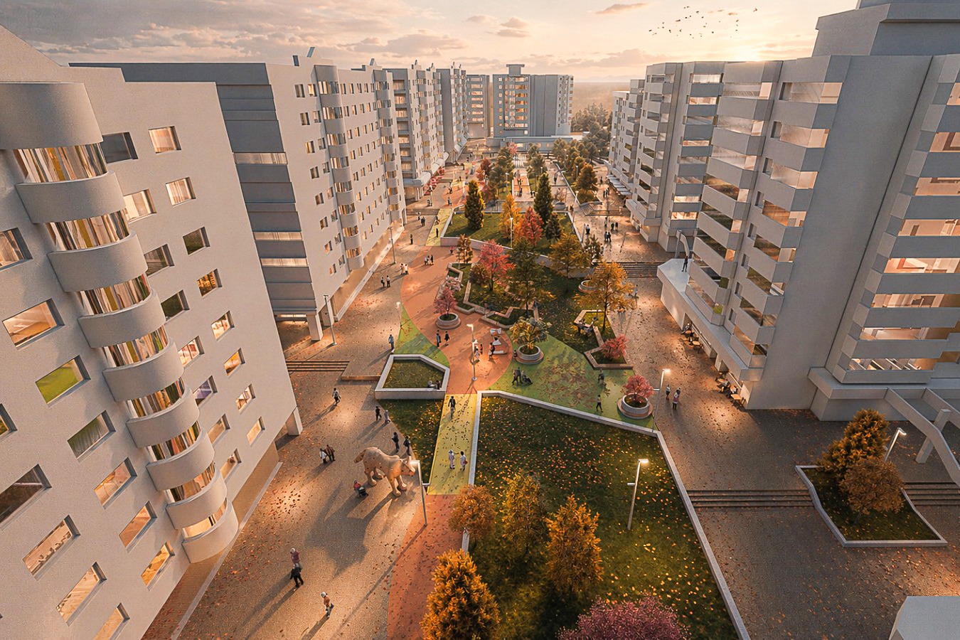 Soluţiile propuse pentru transformarea acestui pietonal într-o adevărată pădure parc sunt variate, de la pardoseli naturale care aduc aminte de cursul unui torent, la grădini de ploaie, adăposturi pentru păsări, pădurea – labirint ecologic sau locurile de joacă sub forma animalelor din pădurile din jur.